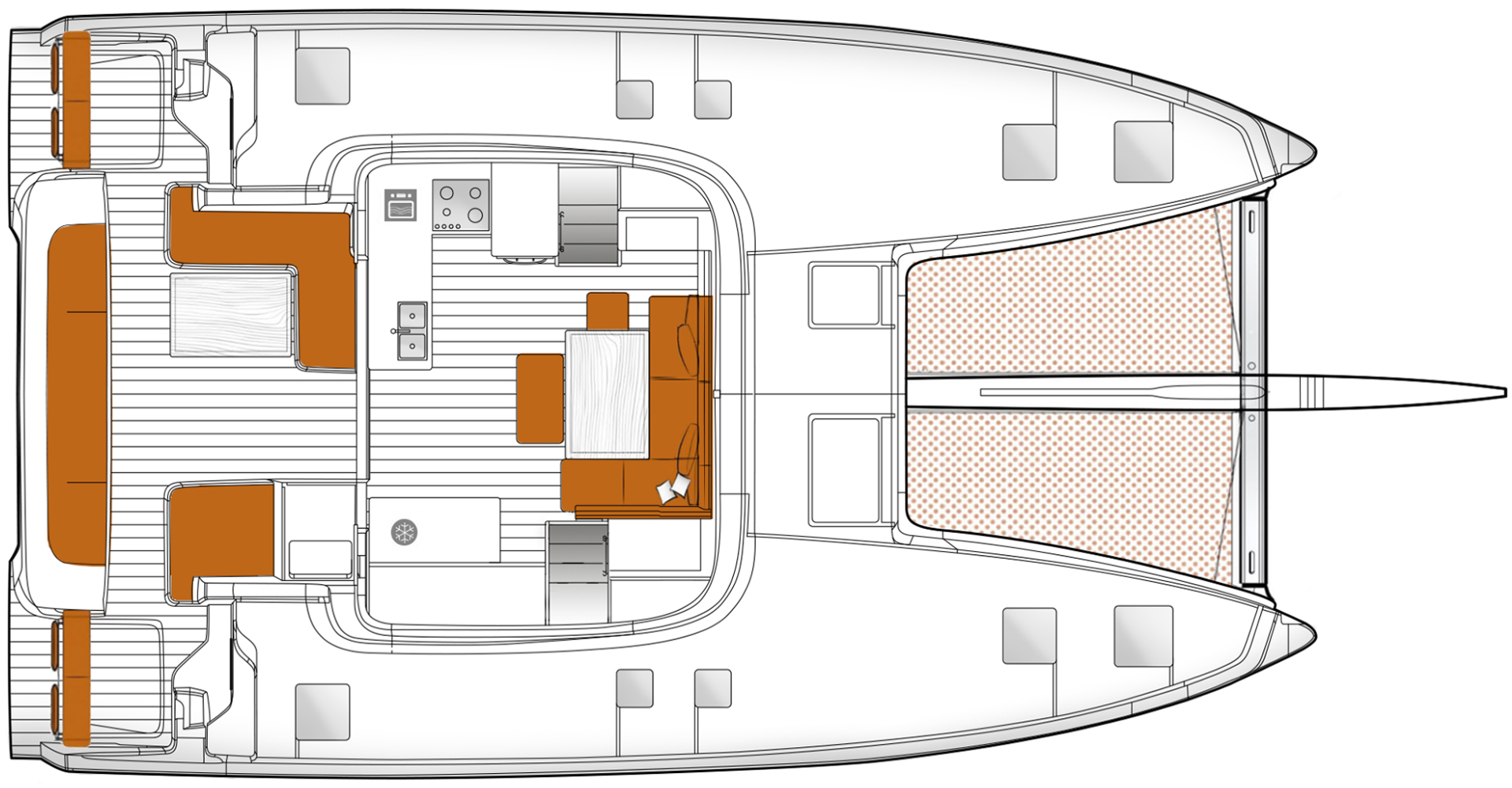 Excess 14 Catamaran Upper Deck Floorplan (Helm | Cockpit | Salon | Forward Area)
